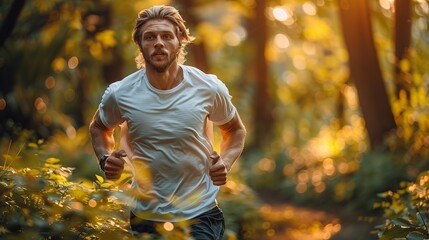 A man running in a park, with a determined look, representing the role of physical exercise in alleviating stress and improving mental well-being. Illustration, Minimalism,