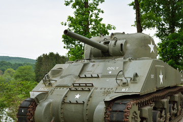 Sherman tank monument in Belgium Ardennes on the river Maas