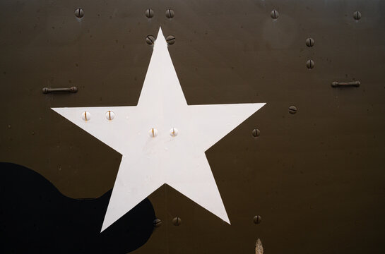 Arromanches, France - August 2, 2021: White star - symbol on the vehicles of american army in the second world war