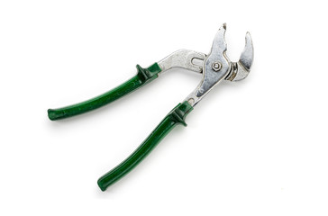 old green alligator wrench, isolated on white