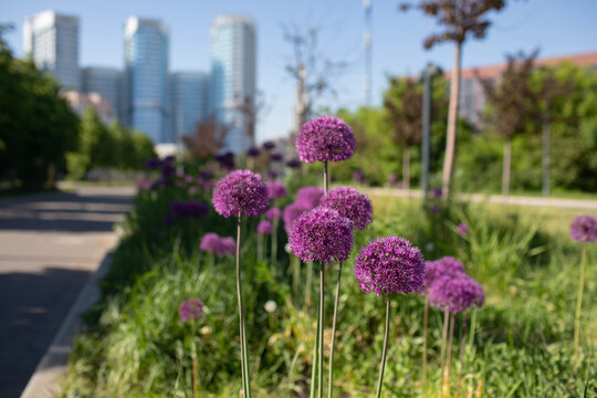Onion allium in the city park