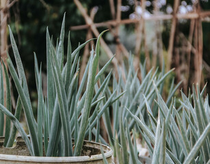 Sydney Australia, row of allium ampeloprasum or common leek in garden