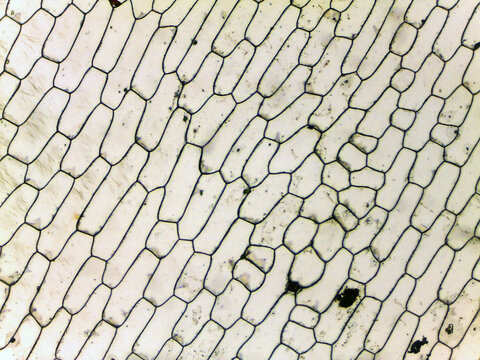 Red onion (Allium cepa) epidermal cells. Fresh sampel without staining. Selective focus