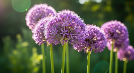 Purple Allium Flower Bulbs Blooming in Garden Border