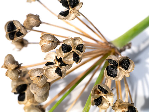 Close up Chinese Chive seeds on white background.