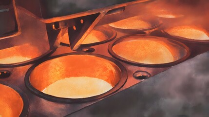 Molten Nickel Alloy Furnace Illustration High Heat Precision Industrial Process Art Realism