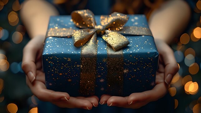 Elegant Gift Adorned with Golden Ribbon and Celestial Theme