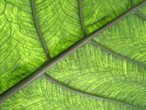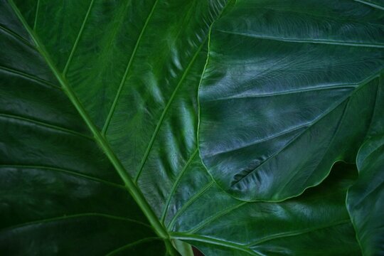 Alocasia macrorrhizos leaf detail in greenhouse for concepts of botanical beauty, exotic growth and nature aesthetics