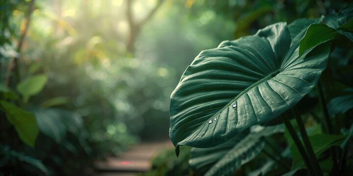 textures and patterns of Alocasia macrorrhizos , water drops on leaves, nature background.