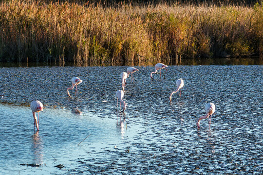 Greater Flamingo, Phoenicopterus roseus in the Ornithological park of Pont de Gau in Camargue, France