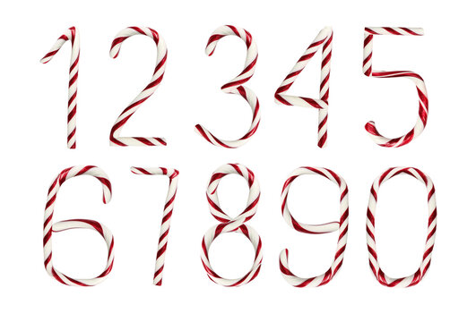 Numbers made of candy canes on white background