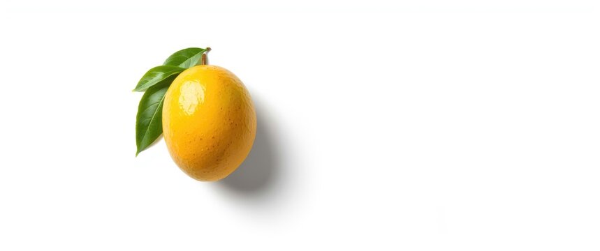 White background featuring a mango with leaves