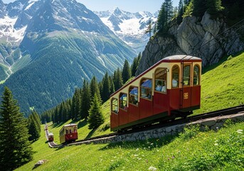 Swiss architecture, chalets, focus on, mountain living, surreal, blend mode, alpine meadow