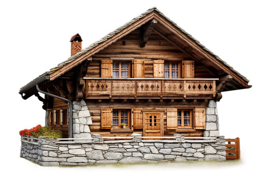 Mountain landscape with traditional swiss chalet in Switzerland.