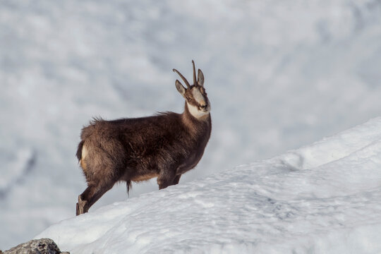 Wild Alps, chamois in the snow (Rupicapra rupicapra)