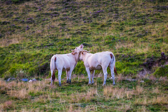 Cow grazing on an alpine pasture near the Col d’Azet between the Louron and Aure valleys after sunset