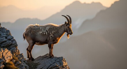Alpine ibex on a background of mountains.