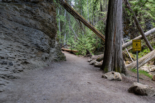 Margaret Falls loop trail with mountain stream near Shuswap lake British Columbia with scenic hiking trail