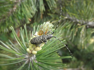 Alpenbock, alpine longhorn beetle on a sycamore maple