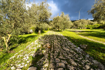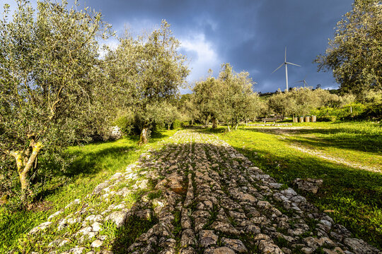A 100m long Roman road in Alqueidao da Serra near Porto de Mos in Portugal