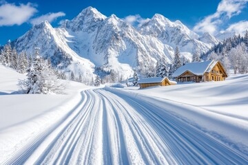 Pristine alpine ski slope on a sunny day