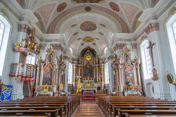 View of interior of Dekanatspfarrkirche in St. Johann in Tirol, Austrian Tyrol, Austria