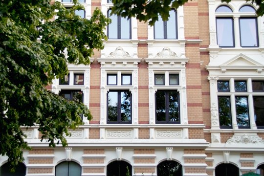 Altbau-Wohnhaus in der Stadt mit Bäumen