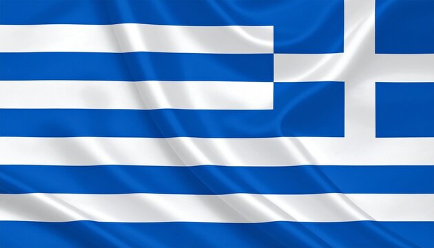 Greece national flag with nine alternating blue and white horizontal stripes and blue canton featuring white cross, mounted on flagpole with gold finial, isolated on plain background, symbolizing nati