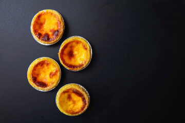 Egg Tart - A cake made from four egg tarts arranged alternately on a black background