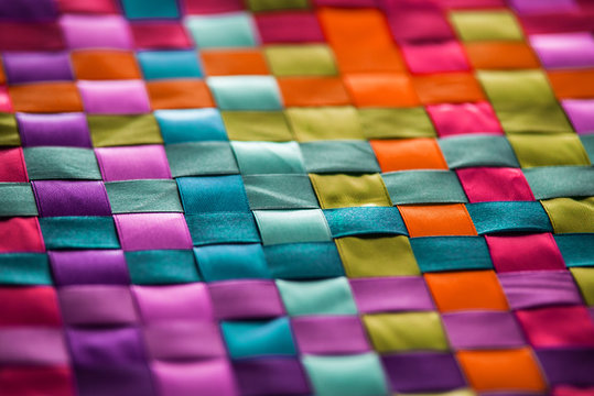 Abstract colorful geometric pattern with red, blue, and white squares