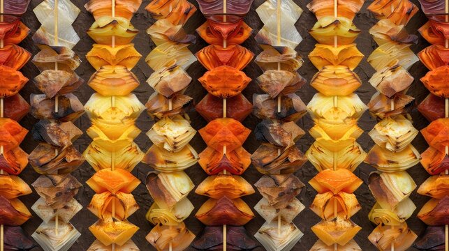 Aerial view of vibrant agricultural fields showcasing various crops and colors. landscape features alternating rows of green, yellow, and brown