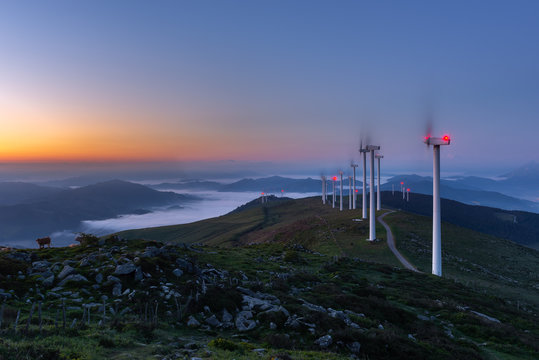 Dusk on Mount Oiz, Basque Country, with wind energy gathering