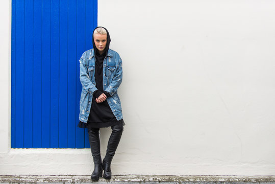 90s Punk Rock: Woman-Led Band in Graffiti Alleyway with Rebellious Attitude