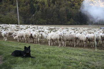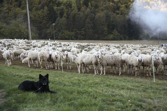 Traditional smoked speck sliced on site during the "Speckfest" celebration in Val di Funes, Dolomites.
