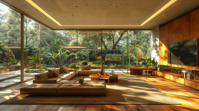 Luxury Farmhouse Living Room with Rustic Furniture and Abundant Sunlight