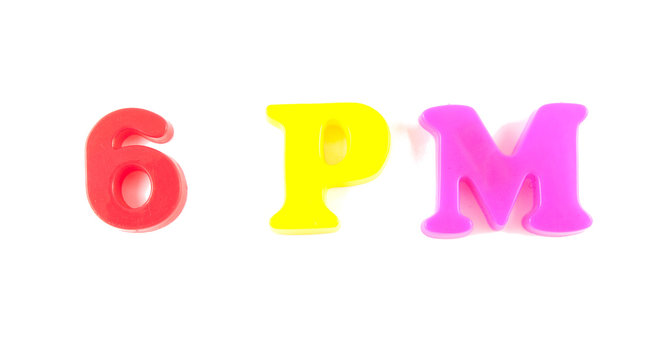 6 pm written in fridge magnets on white background