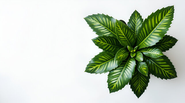 Prayer plant (Ctenanthe burle marxii Amabilis) on white background. Trendy exotic houseplant detail, top-down view.
