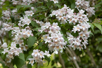 Booming ornamental plant Linnaea amabilis (Kolkwitzia amabilis). This plant is a species of flowering plants in the family Caprifoliaceae.