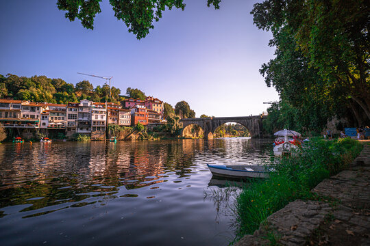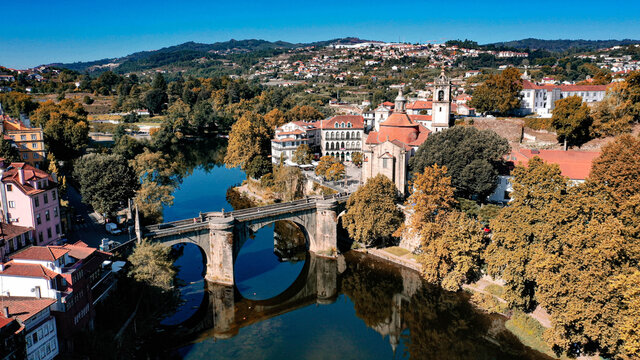 Aerial view of the city of Amarante, Portugal. Historic center of Amarante