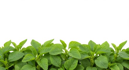 Lush green amaranth plants frame a pure white background, highlighting vibrant nature