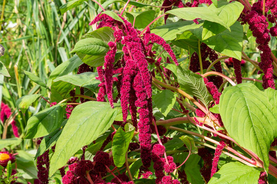 Amaranthus cruentus, red amaranth in garden.