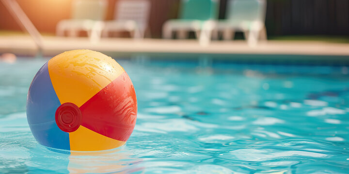 Beach ball floating in pool, vacation, summer