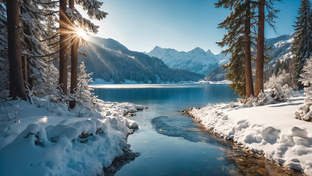 Fantastic evening panorama of Bachalp lake / Bachalpsee, Switzerland. Picturesque autumn sunset in Swiss alps, Grindelwald, Bernese Oberland, Europe. Beauty of nature concept background..
