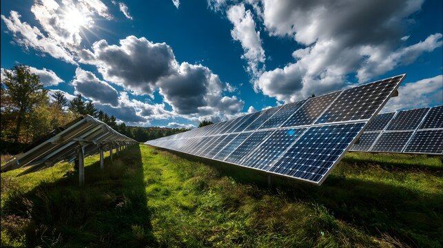 Colorful recycling bins on a grassy field against a partly cloudy sky.