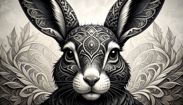 Multicolored geometric acrylic pattern decorates vibrant easter rabbit