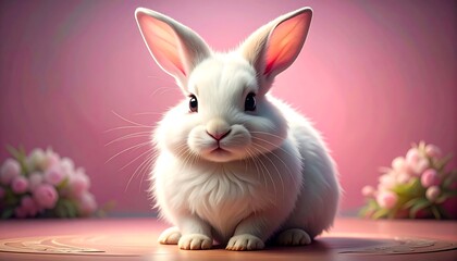 A charming desert rabbit delicately sniffs wildflowers in a sun-drenched meadow, bathed in the warm glow of morning light.