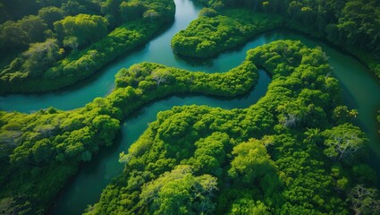 Lush Green Canopy: An Aerial View of a Dense Tropical Rainforest Landscape Cameroon