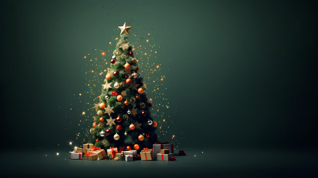 Christmas tree decorated on a plain background