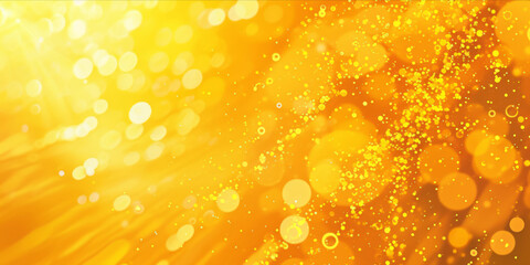 Bright sunny yellow abstract background with dynamic bokeh effect and light particles creating a festive atmosphere.
