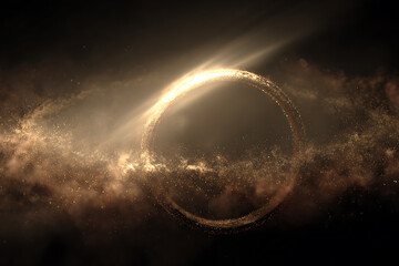 golden dust ring, circle glow overlay, isolated on black background for lighting effects